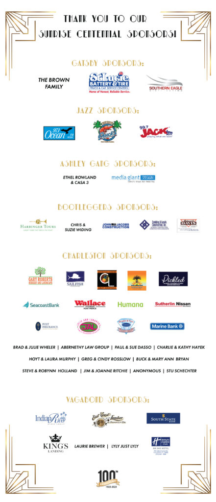Join us for the Centennial Celebration at the Sunrise Theatre’s Speakeasy on Saturday, July 29, 2023, from 7-11PM.