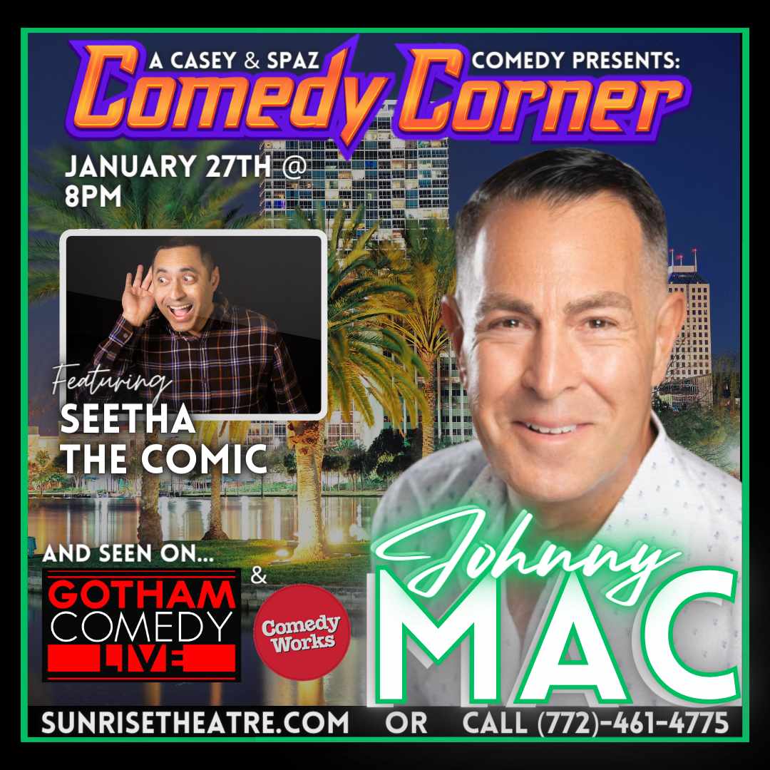 All for only $25 advance $30 at the door! All Comedy Corner shows have full bar, snacks, and ticket giveaways to Sunrise Theatre events!