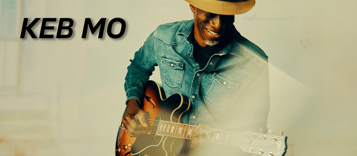 Born and raised in Compton, Keb’ began his remarkable journey at the age of 21, when he landed his first major gig playing with Jefferson Airplane violinist Papa John Creach. For the next 20 years, Keb’ would work primarily behind the scenes, establishing himself as a respected guitarist, songwriter, and arranger with a unique gift for linking the past and present in his evocative playing and singing. In 1994 he would introduce the world to Keb’ Mo’ with the release of his widely acclaimed self-titled debut. Critics were quick to take note of Keb’s modern, genre-bending take on old school sounds, and two years later, he garnered his first GRAMMY Award for Best Contemporary Blues Album with Just Like You. In the decades to come, Keb’ would take home four more GRAMMY Awards; top the Billboard Blues Chart seven times; perform everywhere from Carnegie Hall to The White House; collaborate with many including Taj Mahal, Willie Nelson, Bonnie Raitt, The Chicks, and Lyle Lovett; have compositions recorded and sampled by artists as diverse as B.B. King, Zac Brown, and BTS; release signature guitars with both Gibson and Martin; compose music for television series like Mike and Molly, Memphis Beat, B Positive, and Martha Stewart Living; and earn the Americana Music Association’s 2021 award for Lifetime Achievement in Performance.