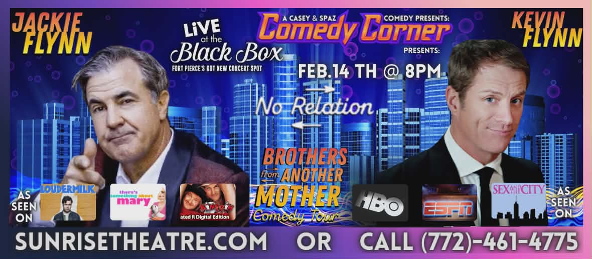 VALENTINES DAY SHOW 2 HEADLINER JACKIE AND KEVIN FLYNN! 2 BROTHERS FROM ANOTHER MOTHER TOUR!