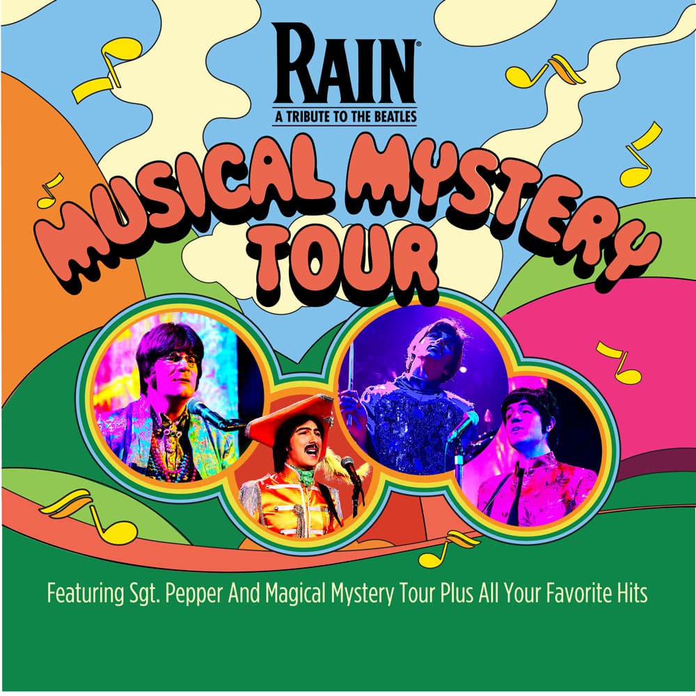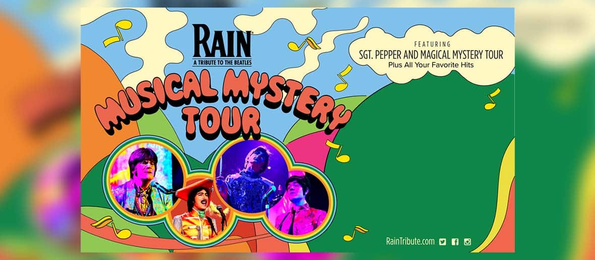 This mind-blowing live performance takes a journey back in time with the legendary foursome delivering a theatrical event that is “the next best thing to seeing The Beatles!” (Associated Press). RAIN – A Tribute to the Beatles is an electrifying concert experience celebrating the timeless music of the legendary fab four with note-for-note precision. From energetic classics to reflective favorites, the band delivers an unforgettable performance that appeals to fans old and new. With vibrant costumes, psychedelic visuals and flawless detail, RAIN creates a stunning concert full of nostalgia and good vibes, a nod to the 60’s but in high definition.