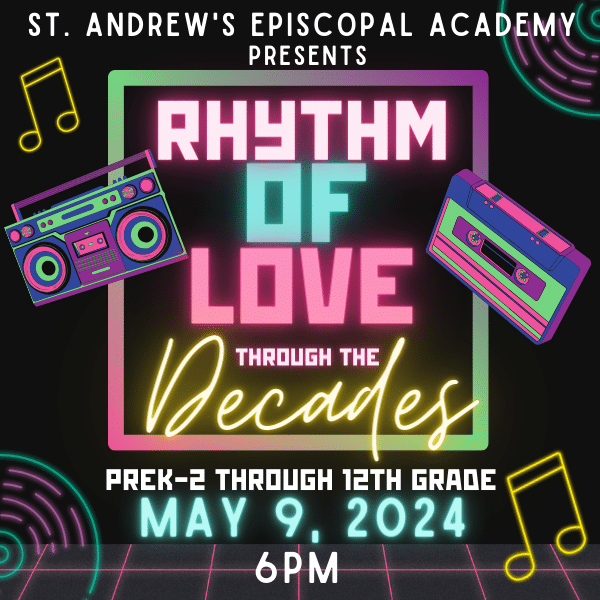 Get ready to sing and dance as we roar through the decades as St. Andrews Episcopal Academy presents Rhythm of Love through the Decades by their Pre K-2 through 12th grade classes!