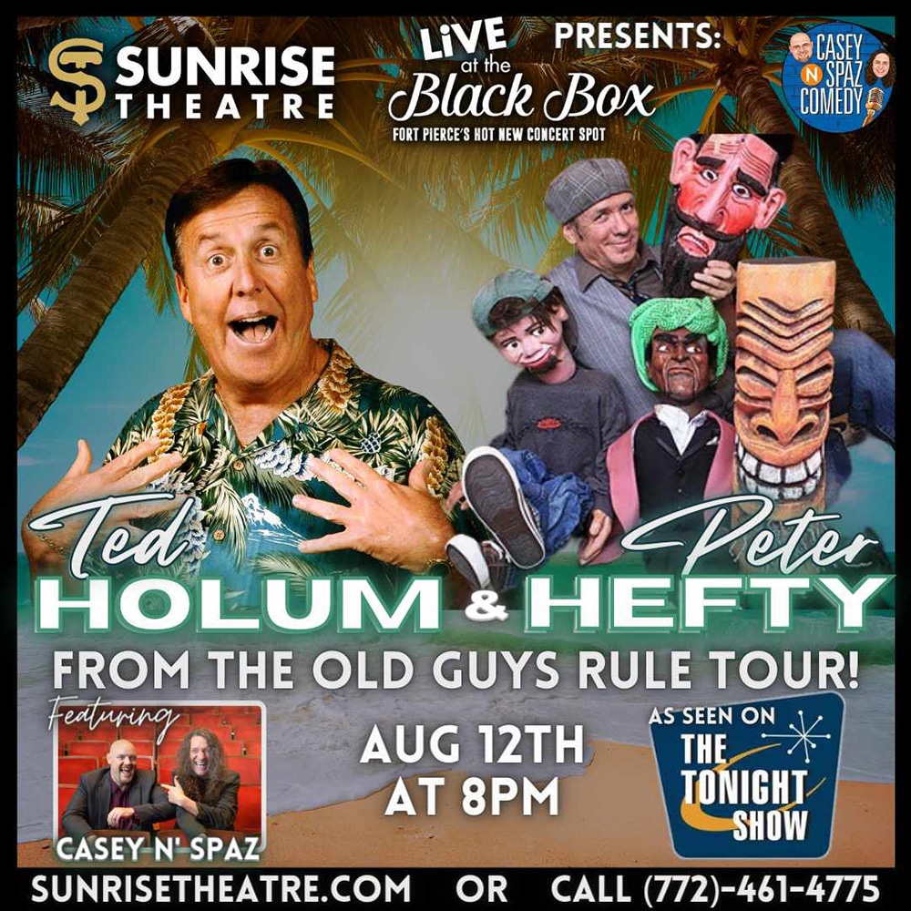 Tickets $25 Advance $30 day of the show all table seating 2 headliner show! 2/3rd of the Old Guys rule comedy tour, seen on the tonight show it’s Ted Holum and ventriloquist Peter hefty Ted Holum