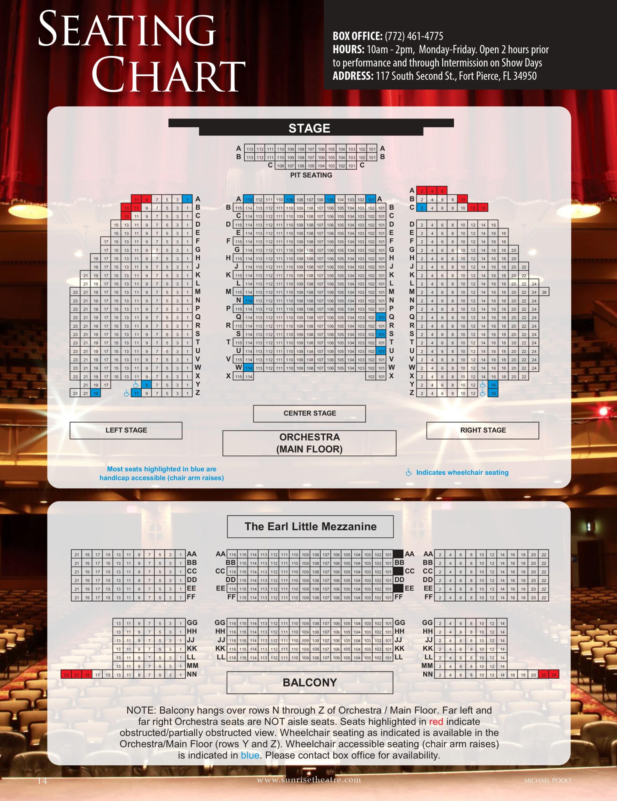 Accessible seating can be purchased online or at the Box Office. Lobby restrooms are accessible. Hearing assistance devices are available at the Box Office. Please see an usher or the House Manager for more information. For any other accessibility needs, please reach out to the Box Office Manager at (772) 467-4128.